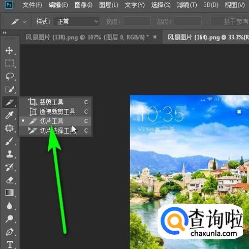 鼠标移到界面左侧的工具箱中,调出切片工具,如图所示。