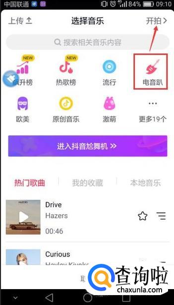 在进入的页面中,可以选择各种风格的音乐,这里选择电音。选择自己喜欢的背景音乐。