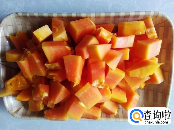 木瓜切成小丁,土红糖准备好。