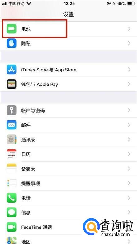 然后点击电池,如下图所示。