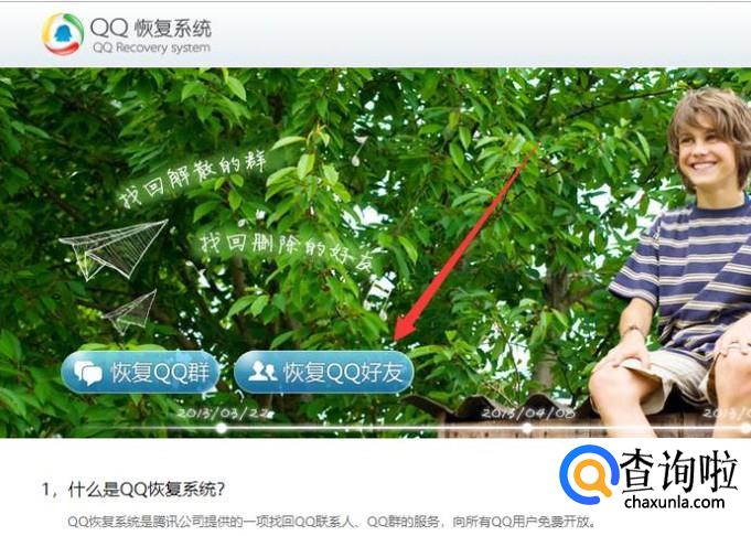 进入之后,登陆QQ,点击“恢复QQ好友”,如图所示。