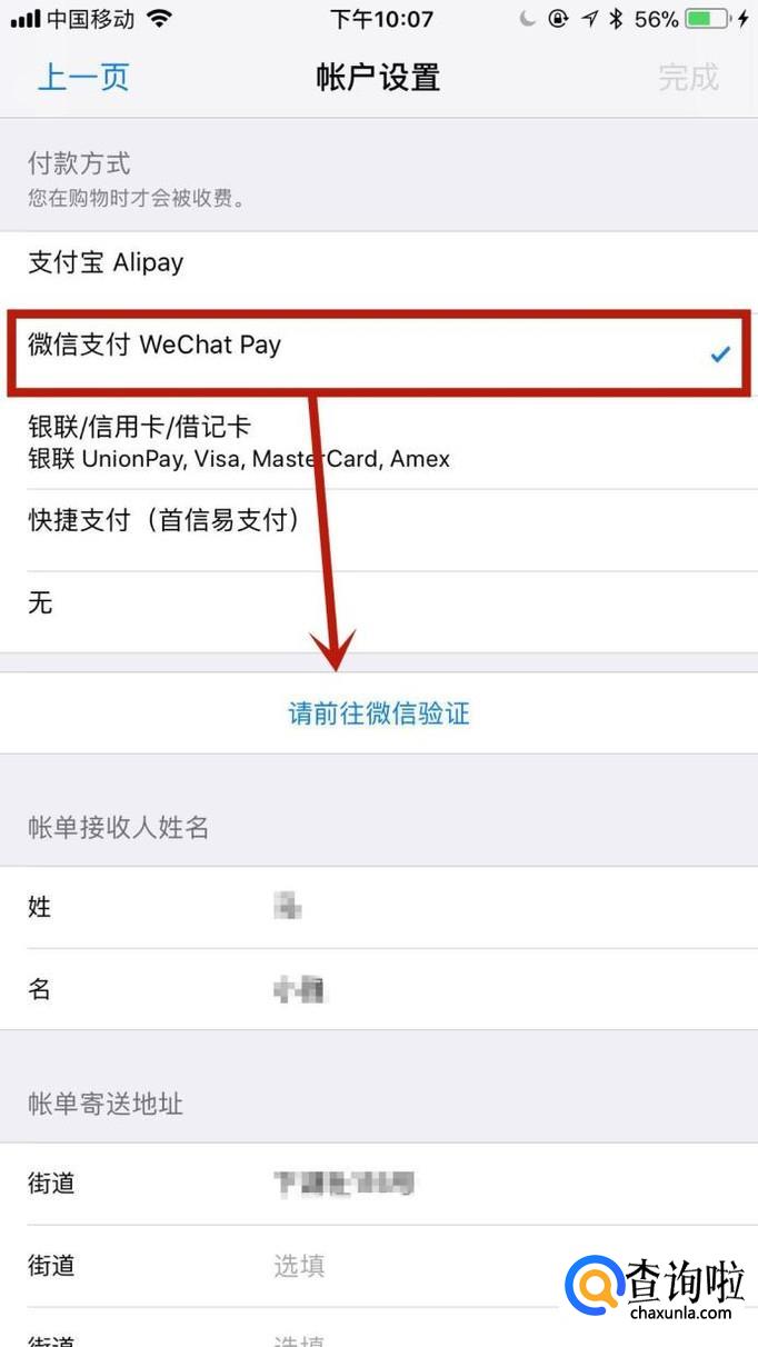 接着点击微信支付并选择请前往微信验证,如下图所示。