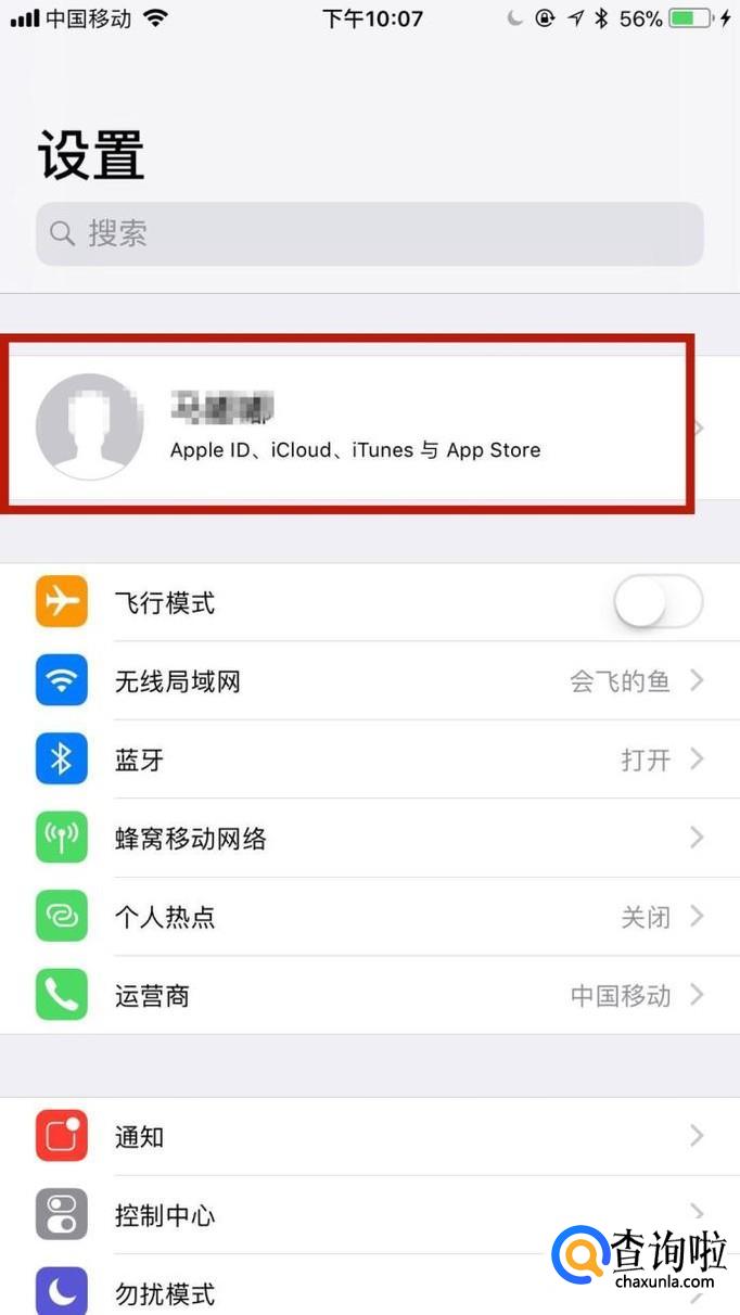 然后点击屏幕上方的个人apple id,如下图所示。