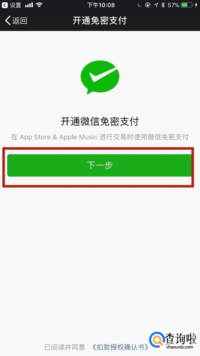 微信绑定App Store成功。