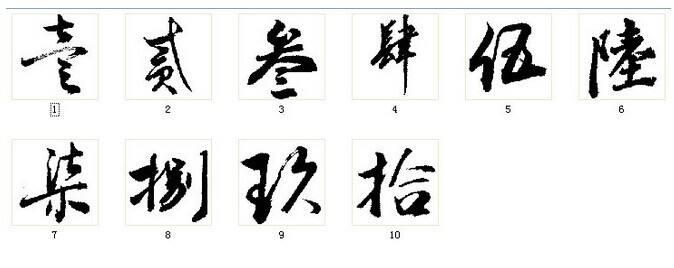一到十大写分别是:壹、贰、叁、肆、伍、陆、柒、捌、玖、拾。大写数字的使用始于明朝。