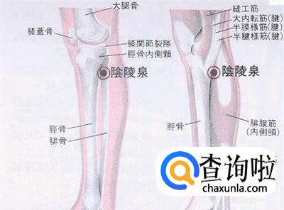 阴陵泉穴属于太阴脾经,位置在小腿内侧,胫骨内侧下面和边缘之间的凹陷部位。