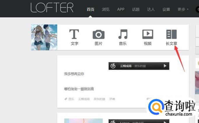 编写完成后,点击右上角的发布,这样就在LOFTER上发布了一篇文章,在自己的主页中也可以看到