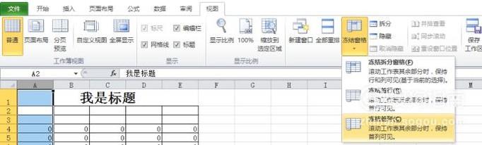 之后点击“冻结窗格”→“冻结首行”,即可