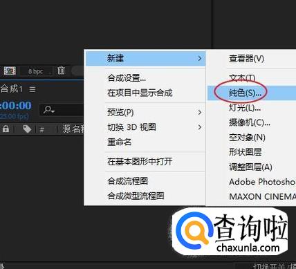 右击合成1面板空白处,新建一个纯色层,作为背景。
