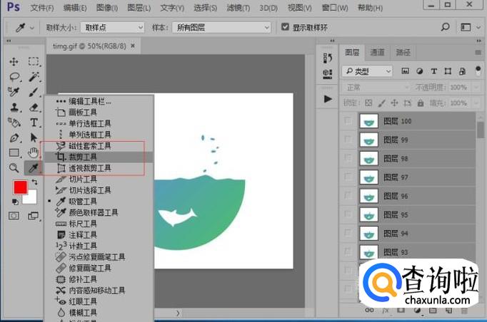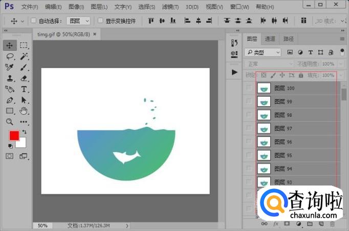 我们先选择图层 1,然后按住shift的键点击图层 100,这样我们就全选了所有的图层。