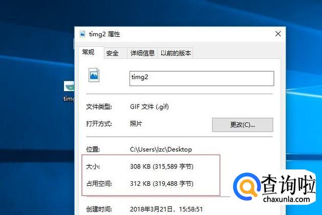 首先我们看一下自己下载的gif图片大小。尺寸如图所示。