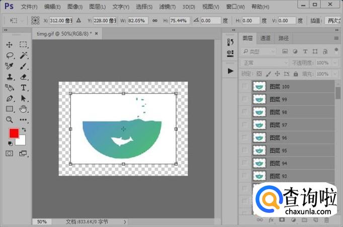 我们还可以使用CTRL加t键,对图片进行自由变换,等比例缩小。这样也是可以改变gif图片大小的。