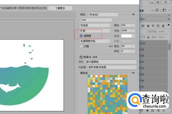 接下来就是保存了。我们使用快捷键CTRL加shift加加alt键,这样是导出为web格式。保存的时候我们选择保存的后缀为gif并选择透明度。