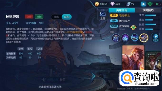 孙策一技能可以简单理解为位移加控制。