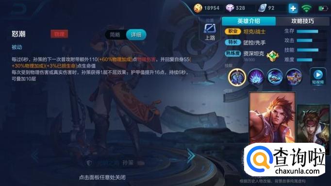 孙策的被动技能,每六秒,下次普通附带额外伤害同时回复生命值。每次受到伤害都会增加一层护甲,最多十层。