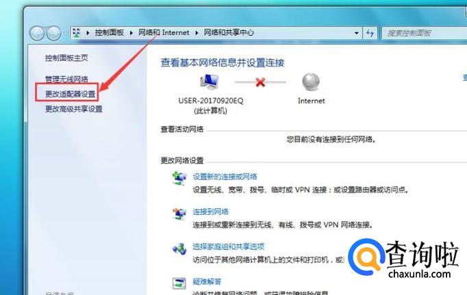点击左侧的更改适配器设置,如下图。