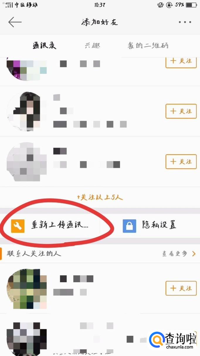 也可以下滑找到“重新上传通讯录”,点击选择。