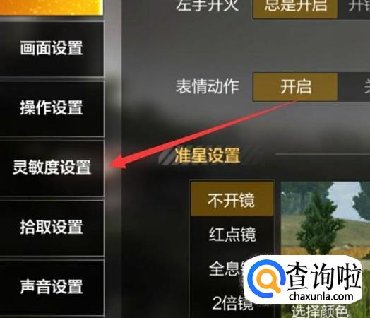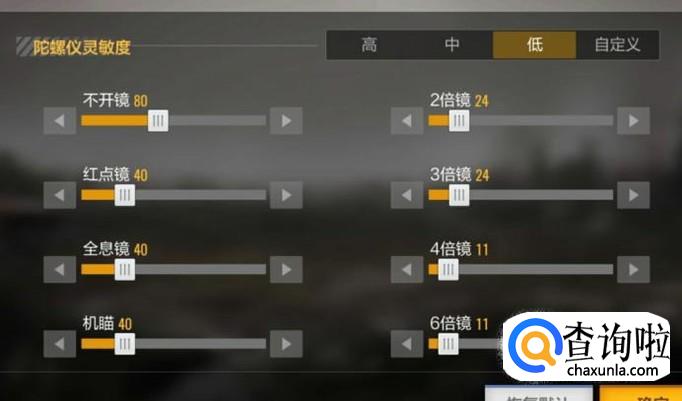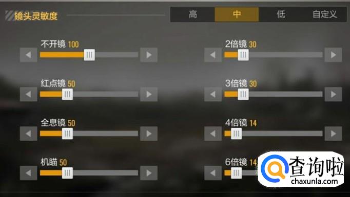 不开镜的情况下,八倍镜除外,其余倍镜可以将灵敏度适当调高,如图所示。