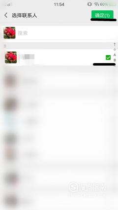 此时会出现联系人的页面,将你选择好后,点击对号,再点击右上角的“确定。”
