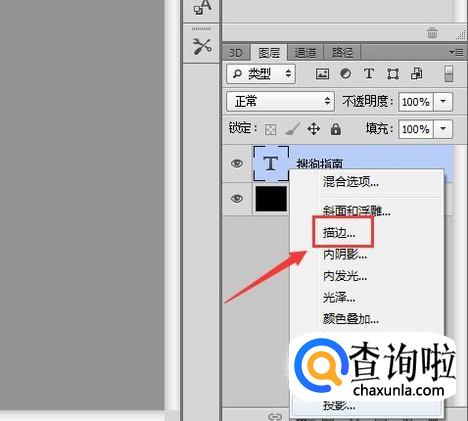 输入文字之后在图层里找到图层样式选项,点击该选项在其内找到描边选项,如图所示: