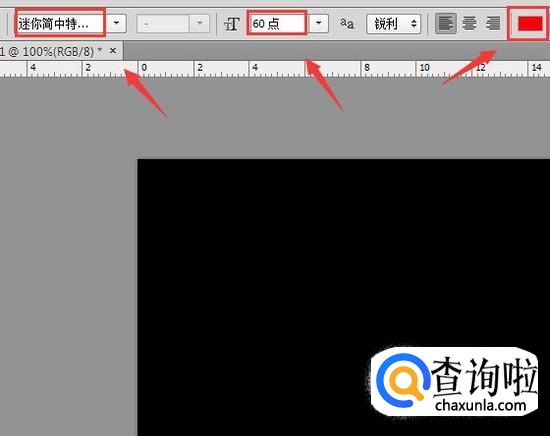 打开ps之后我们新建一个文件,并将背景设置黑色,然后再在工具箱内找到文字工具,如图所示: