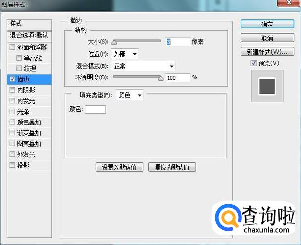 点击描边选项在弹出的对话框内设置描边颜色为白色,大小为3,如图所示: