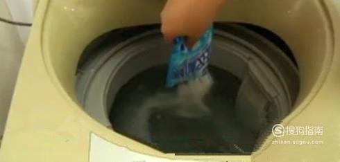 其次给洗衣机水里加入内筒洗涤剂,有100克就可以了,静置泡上3个小时。