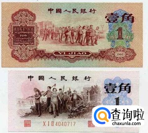 背绿壹角。第三套人民币中发行量最少、发行时间最短、存世量最少的壹角币。其正面为深棕色,但背面菊花图案中间为棕色,两边为墨绿色,有点像蝴蝶展翅,故又称为“蝴蝶版”。
