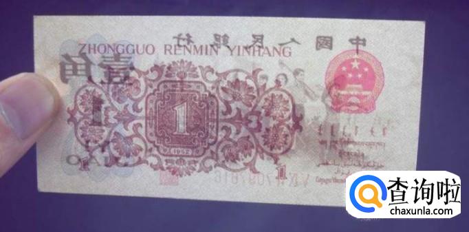 第三套人民币的首发票劵——枣红一角。整张纸币的主色调为枣红色,正面是教育生产的结合图。