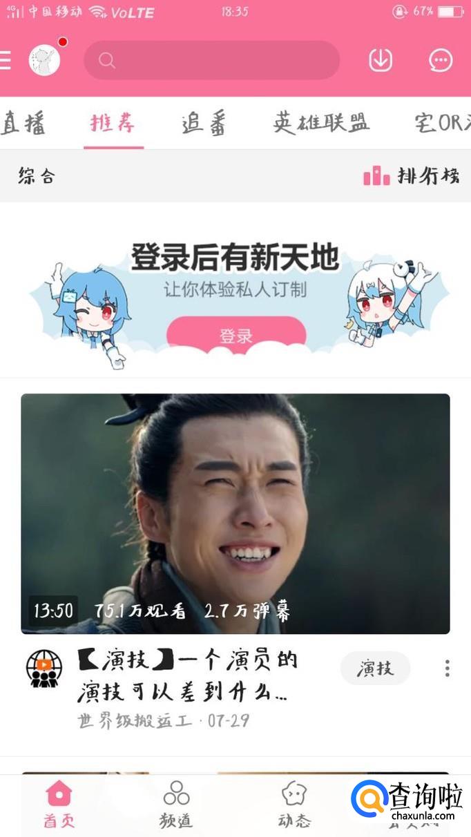 首先打开B站软件,进入首页。