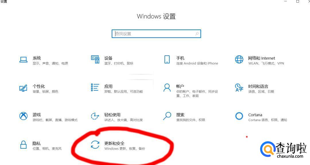 点击“更新与安全”,进入界面。