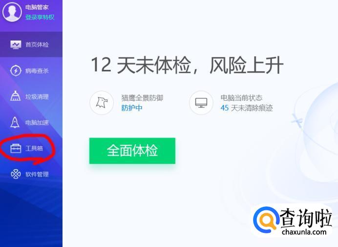 在里面点击“检查更新”,若更新失败,则可以打开电脑管家软件。