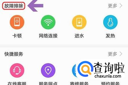 在服务列表中,系统会总结出一些手机比较容易出的问题,比如有卡顿、进水以及发热等,我们可以根据自身的手机情况来这里寻找解决方案;