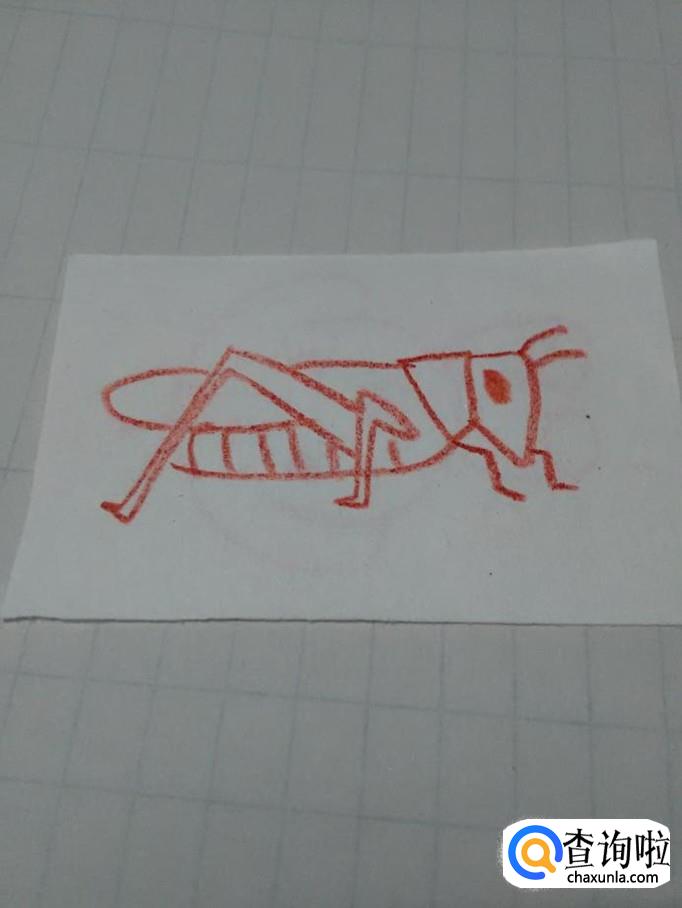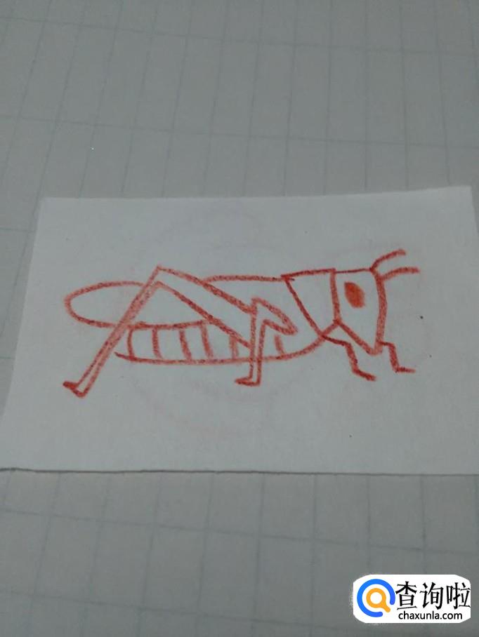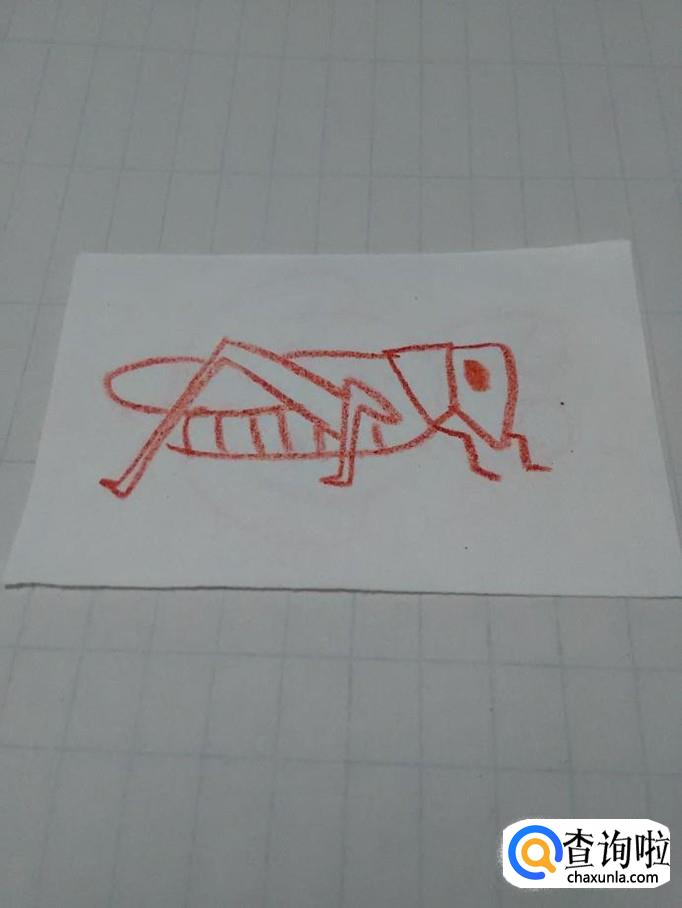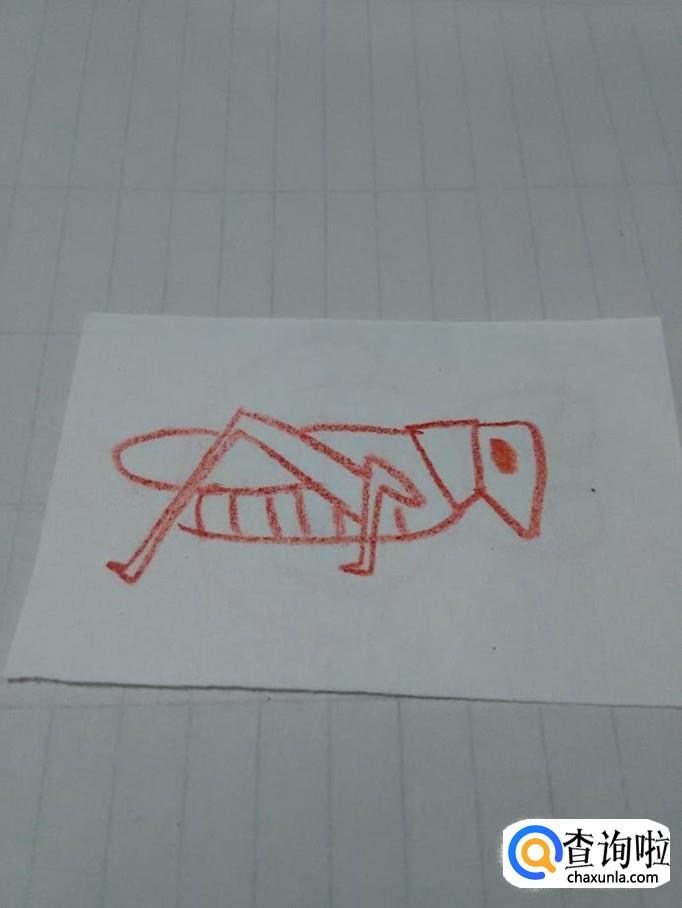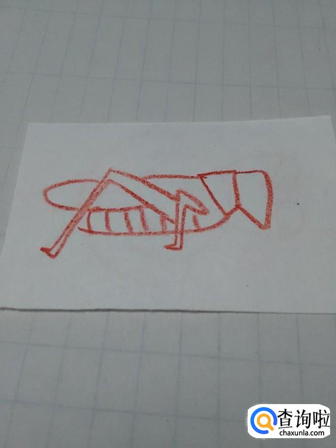 在蚂蚱头顶上画两条弧线,表示蚂蚱的触角,蚂蚱就画完了。