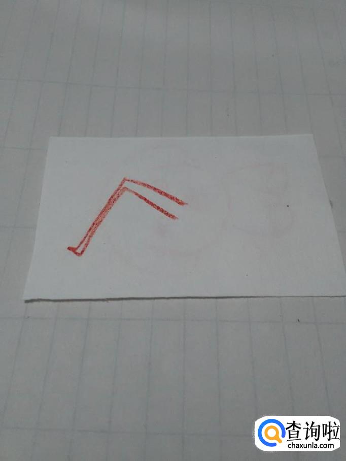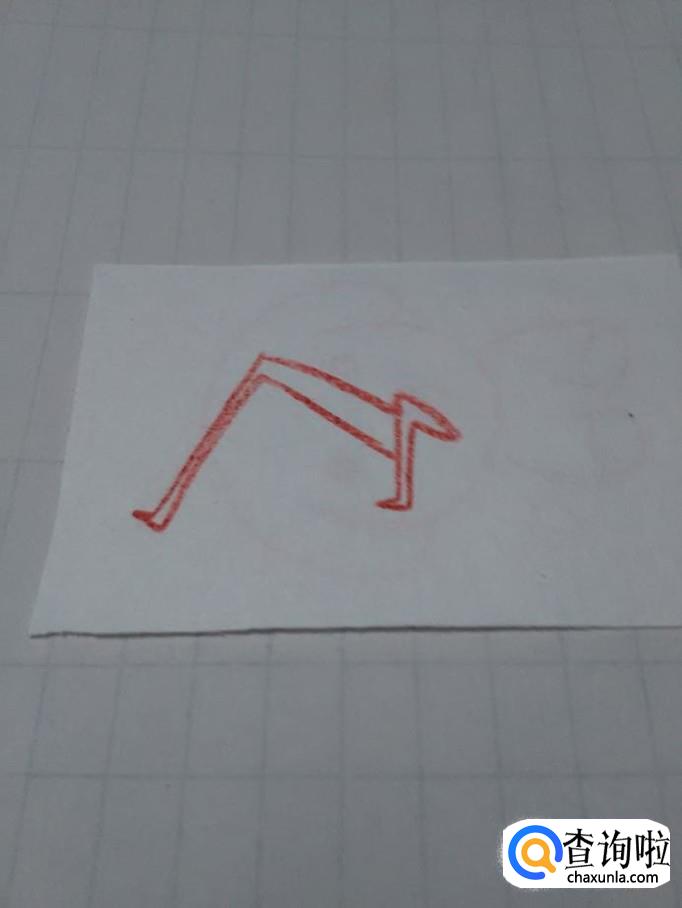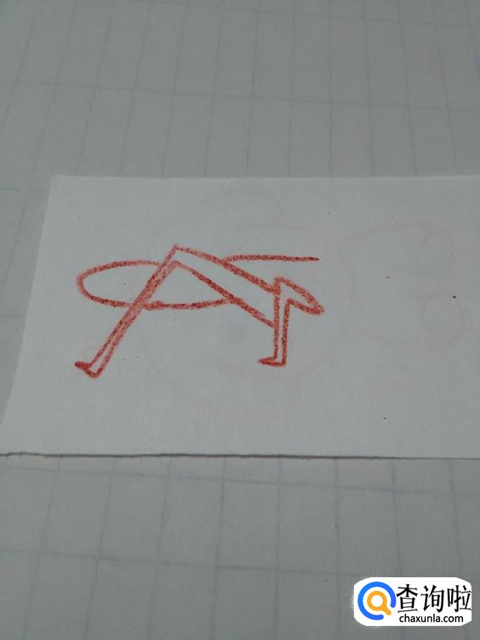 用彩笔在后腿的右侧再画两条相交的折线,表示中间的一条腿。