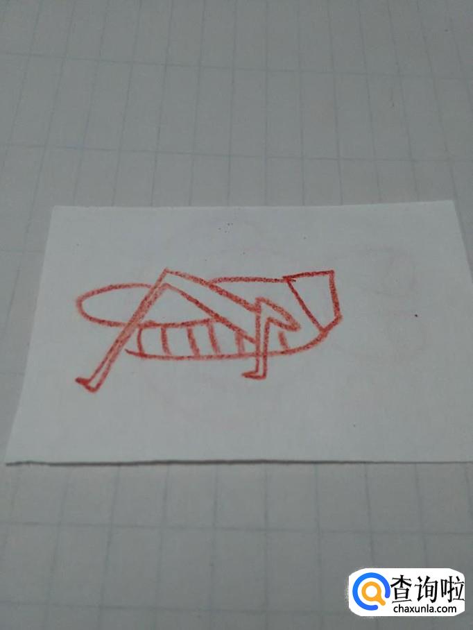 在脖子右侧再画一个梯形,表示蚂蚱的头。