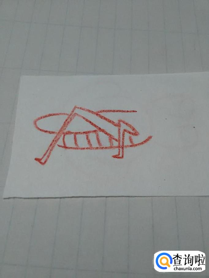 在两条腿的左侧换一个躺着的U,表示蚂蚱的翅膀。
