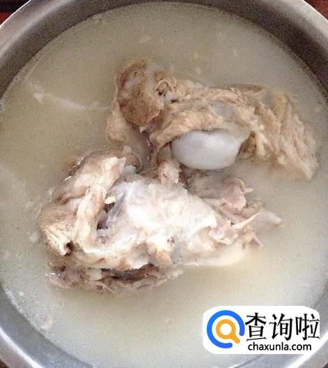 摔面的另外一个秘诀大骨汤呢就和平时熬高汤一样,先将骨头洗净焯水,将几块姜,蒜和几根葱结下锅煮几分钟,再讲处理好的骨头放入锅中大火煮2-3小时