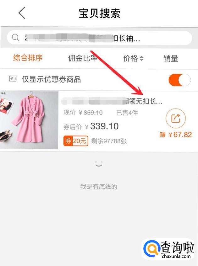 在搜索栏黏贴刚刚复制的淘宝标题,并点“搜索”。