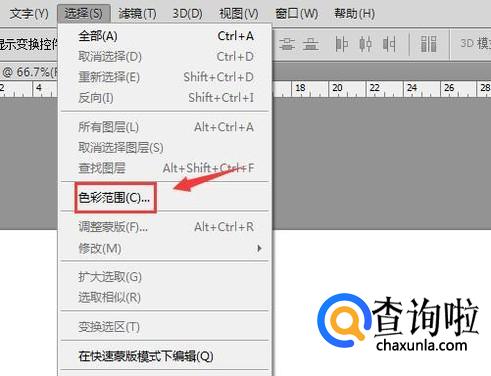 使用ps将我们的图片打开,然后选择logo图片,然后在选择菜单那里找到找到色彩范围选项,如图所示: