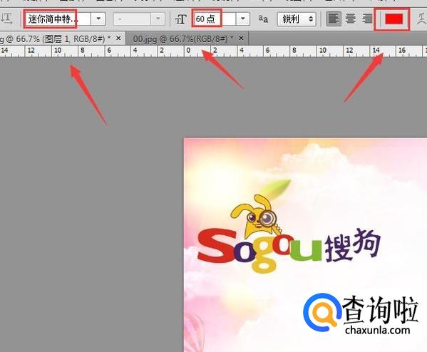 选择文字工具在属性里设置字体大小和颜色,如图所示: