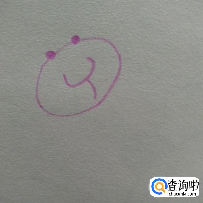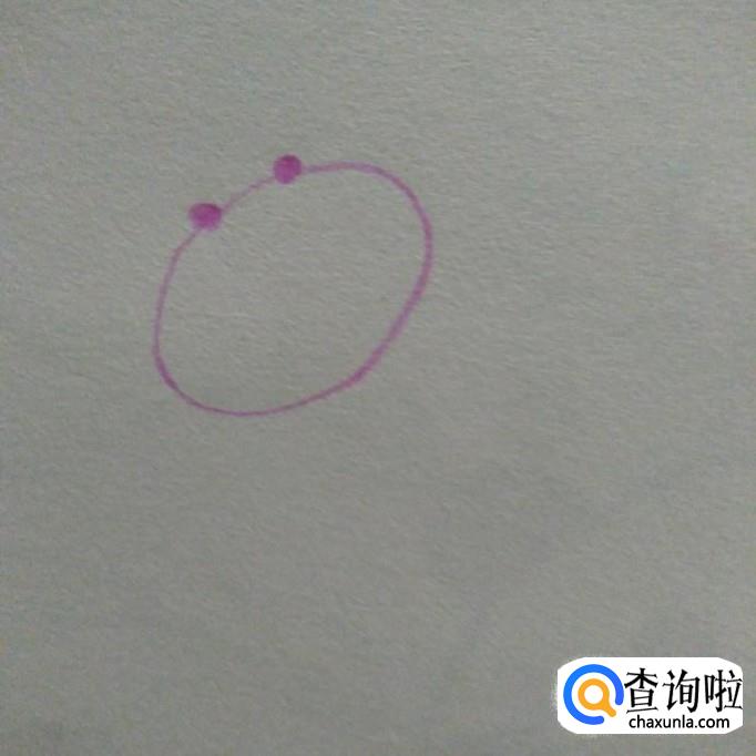 然后,我们在椭圆的中上方画两个间隔适中的小点,作为眼睛,如下图所示