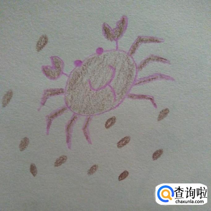 最后,我们用泥色的笔在旁边画出几块石头,如下图,这样子可爱的小螃蟹就做好了。