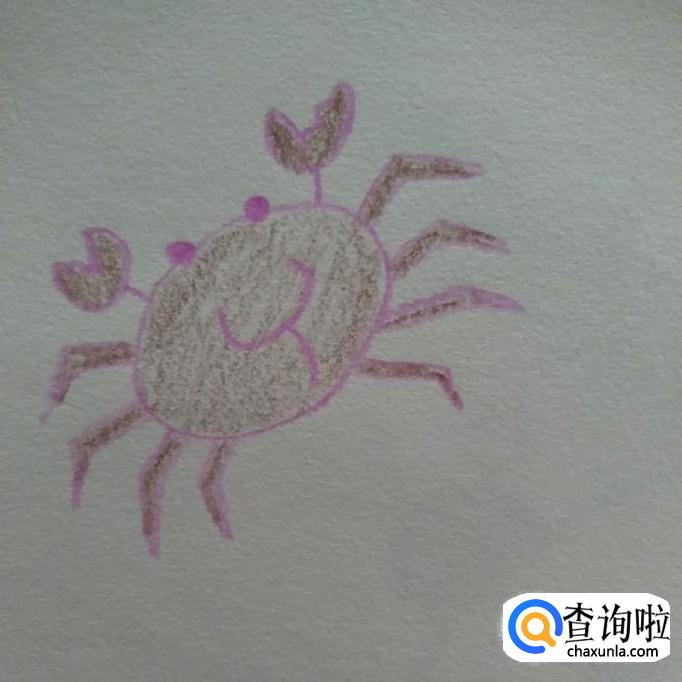 画出左边的四只足,再把螃蟹涂成泥色,如下图所示