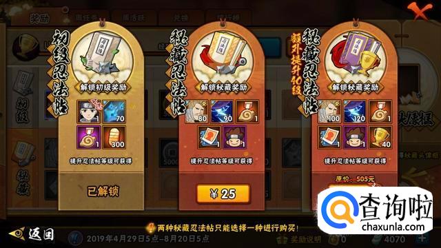 活动期间学员是可以随时激活秘藏忍法帖的,秘藏忍法帖的好处就是能够继承所有的初级奖励,而且还能够获得当前这个等级的所有秘藏奖励,只要每升1级忍法帖就能够获得对应的奖励,而且购买秘藏忍法帖也是有很多奖励的,所以可以去买。