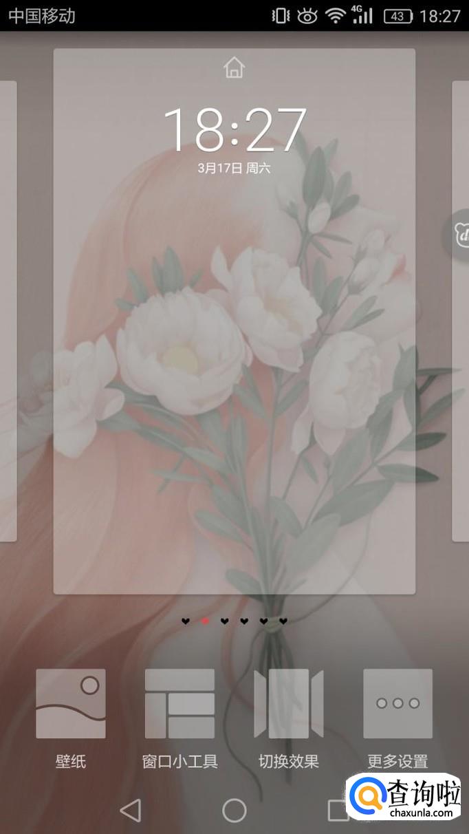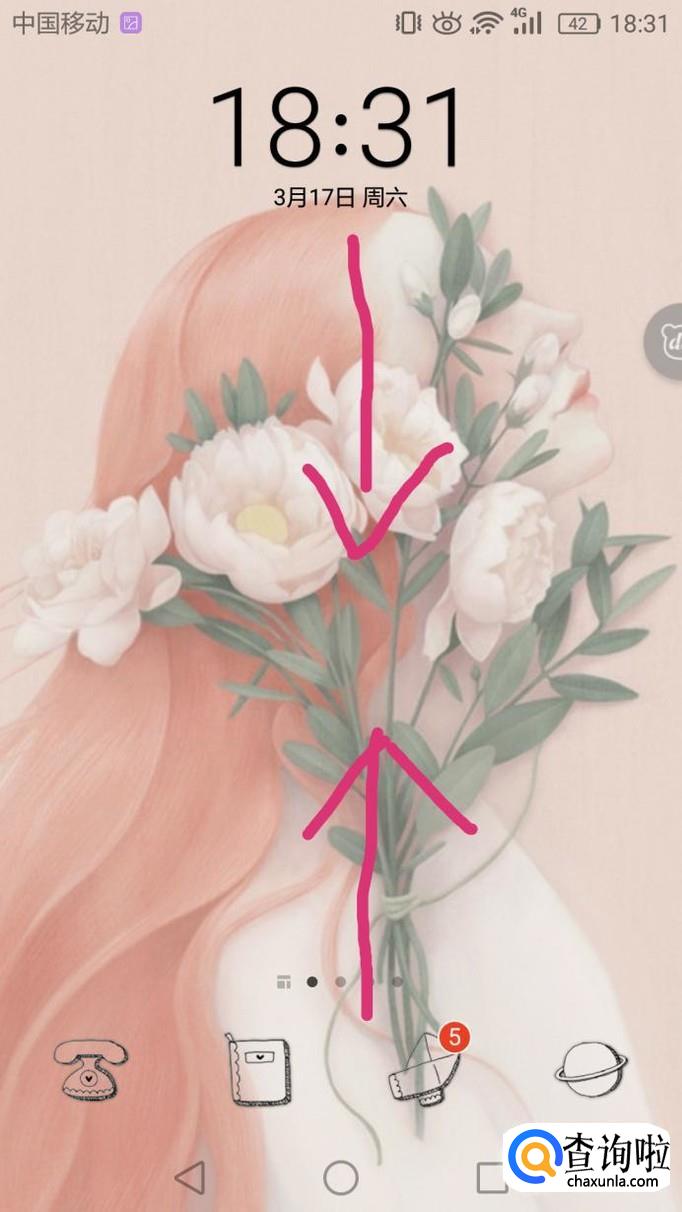 在华为手机的主页面中,用两只手指如图中箭头方向滑动。