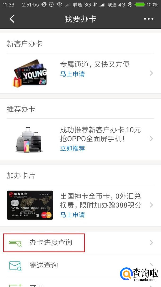接下来,在打开页面中,点击选择“办卡进度查询”按钮。