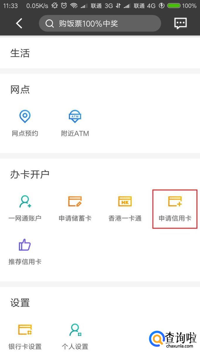 接下来,在打开的办卡开户页面中,选择“申请信用卡”选项。