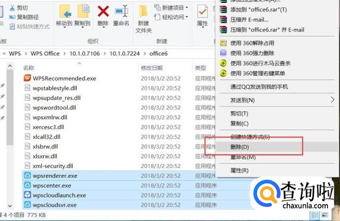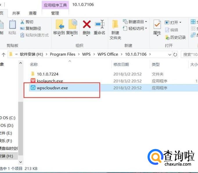 接下来,我们还需要返回到安装文件目录的上一层,在该目录中,同样删除WPS云文档登录程序文件,如下图所示。