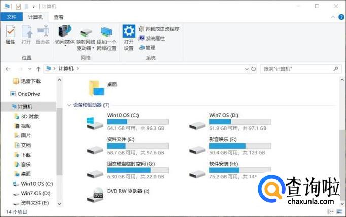 接下来,我们打开Win10资源管理器界面,在该界面中可以看到WPS云文档图标已经被删除掉了。